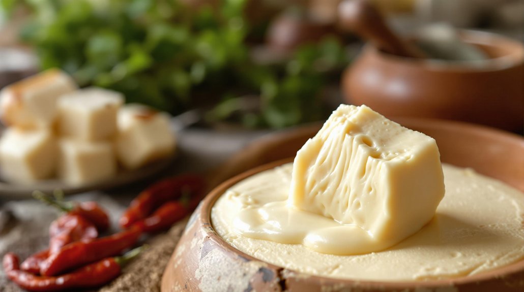 Asadero cheese, Mexico's premier melting cheese, boasts a 500-year heritage rooted in Chihuahua's Mennonite communities. You'll recognize its semi-soft, creamy texture and mild, slightly salty flavor that transforms traditional dishes like quesadillas and queso dips. It's produced by pressing cow's milk curds to create an elastic consistency that melts beautifully when heated. With 6g of protein per ounce and rich calcium content, this versatile cheese offers both authentic taste and nutritional benefits.