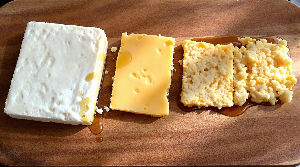 Fresh Asiago (Pressato) offers a creamy, mild flavor with a semi-soft texture that melts beautifully in cooking. In contrast, aged Asiago (d'Allevo) develops a firmer, grainier texture with concentrated nutty flavors, making it ideal for grating. You'll find fresh Asiago perfect for sandwiches and melting applications, while aged varieties shine when grated over pasta or risotto. Both versions of this Italian DOP cheese bring distinctive characteristics to your culinary creations.