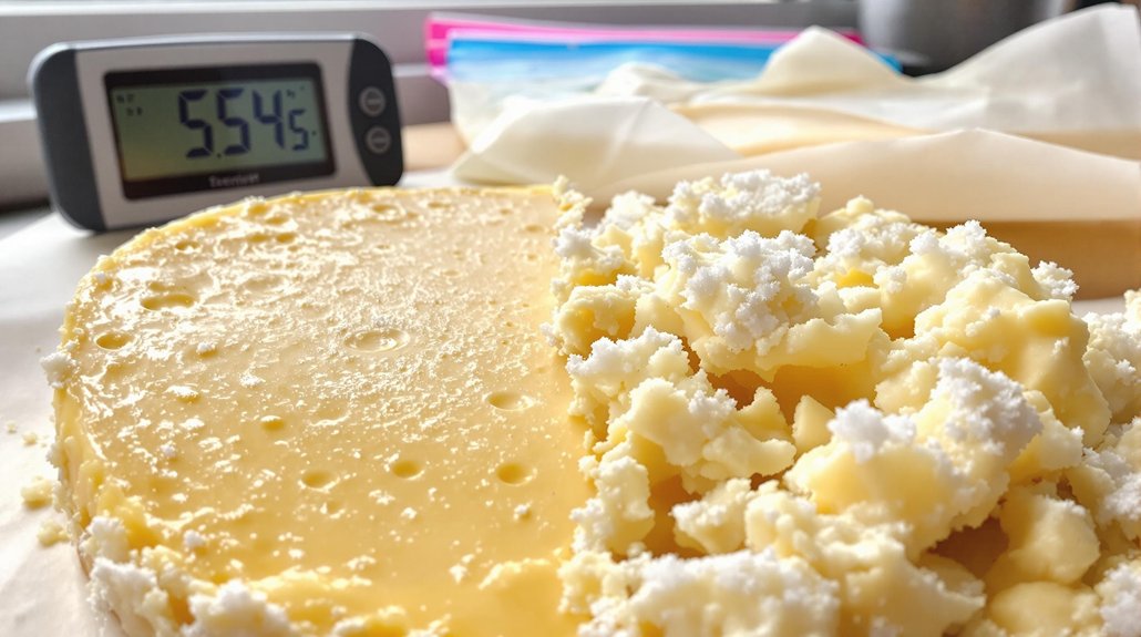 Yes, you can freeze cheese, but it affects texture differently based on type. Hard cheeses like cheddar fare best, lasting up to a year when properly wrapped and sealed. Soft, high-moisture varieties like brie should be avoided as freezing creates ice crystals that disrupt their structure. For best results, shred cheese before freezing, thaw slowly in the refrigerator, and use previously frozen cheese in cooked dishes. The following tips will transform your cheese preservation game.