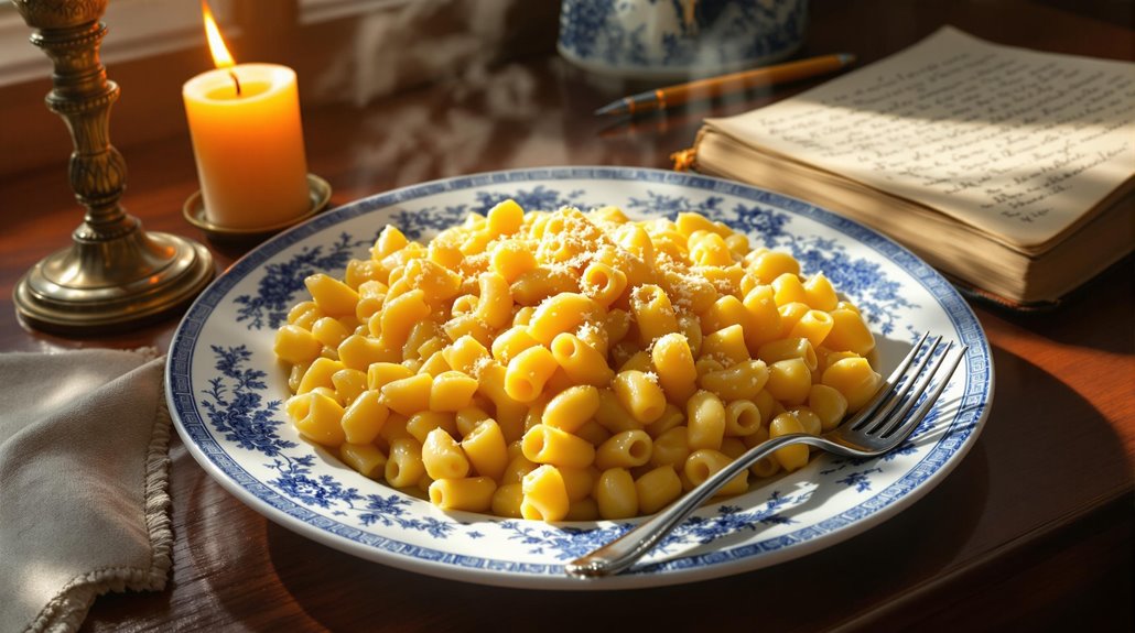 After returning from France, Monticello became the epicenter of America's macaroni and cheese revolution, with Jefferson's 86 crates of French culinary equipment altering his Virginia estate into a fusion kitchen. You can trace the dish's American expedition through the skilled hands of James Hemings, who perfected French cuisine and created a unique blend of European and Virginian flavors.