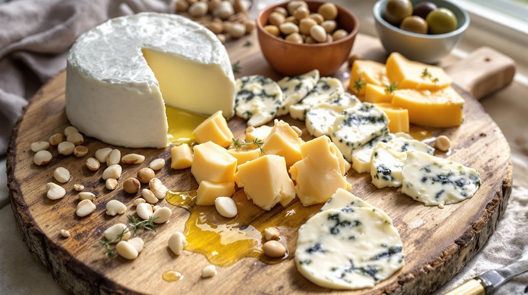 To maintain healthy calcium intake while protecting your heart, focus on varieties that contain less than 140mg of sodium per serving. By choosing wisely, you'll enjoy cheese's nutritional benefits without compromising your blood pressure goals. The calcium and casein in cheese also contribute to dental health by forming a protective layer on teeth that shields against harmful acids.